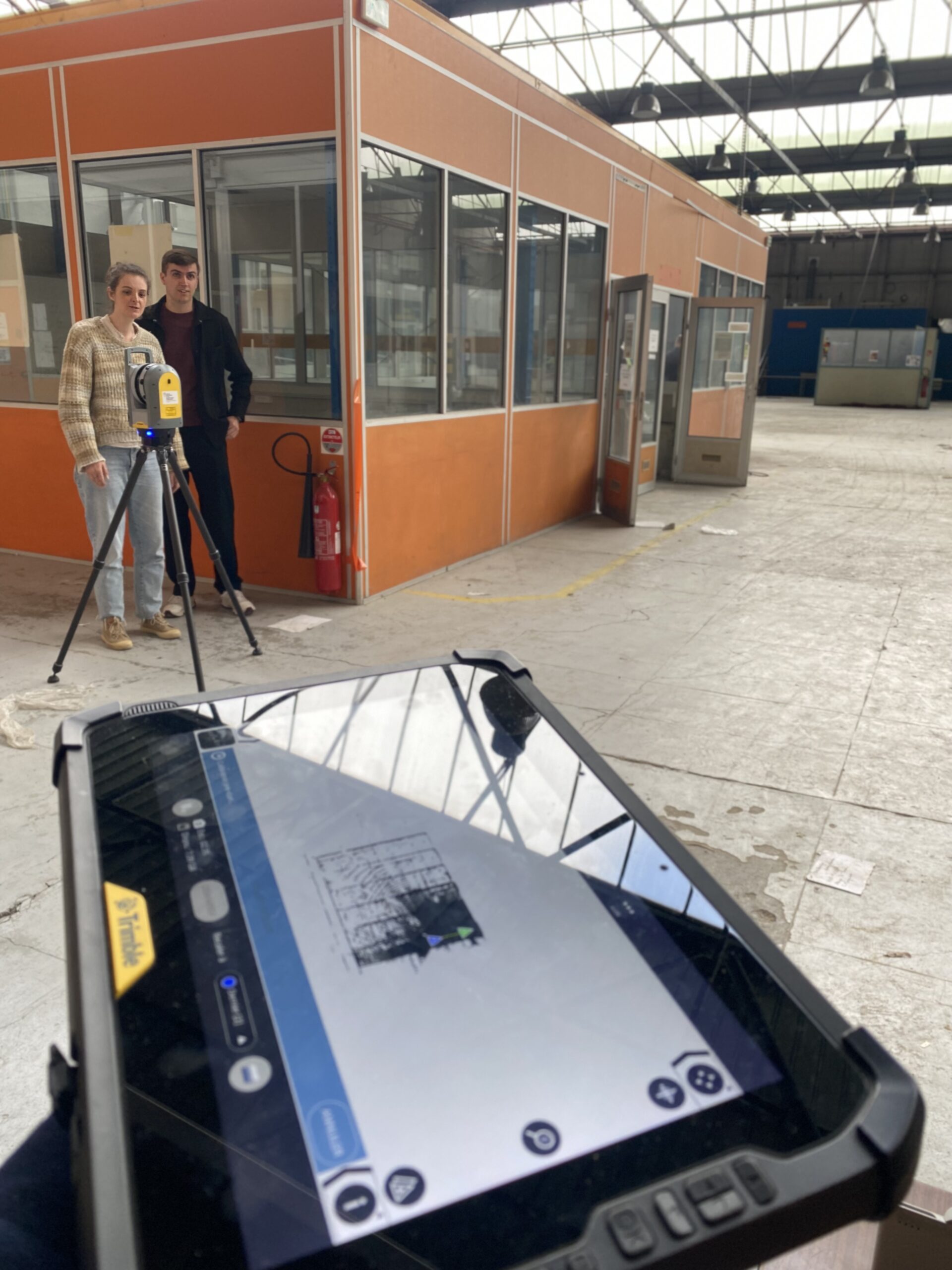 Jour 1 — Après-midi : Acquisition terrain Place à la pratique. Les enseignants réalisent leurs premières acquisitions avec le Trimble X7 et son logiciel Field Link, puis avec le GeoSLAM en condition de relevé ambulatoire. L’iPad Pro et Polycam complètent cette session par une approche légère et immédiate de la captation.